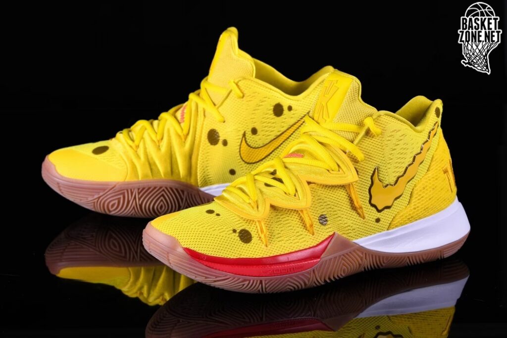 Jedną z najbardziej znanych i pożądanych kolekcji obuwia inspirowanych SpongeBobem jest ta stworzona przez firmę Nike we współpracy z gwiazdą koszykówki Kyriem Irvingiem. Nike stworzył buty do koszykówki Kyrie 5, które stały się częścią większej kolekcji Nike x SpongeBob SquarePants. Ta linia obuwnicza nie ograniczała się tylko do jednego modelu, ale obejmowała różne warianty kolorystyczne inspirowane głównymi postaciami z kreskówki: SpongeBobem, Patrykiem Rozgwiazdą, Skalmarem Obłonnogim, Panem Krabem, a nawet Sandy Cheeks.