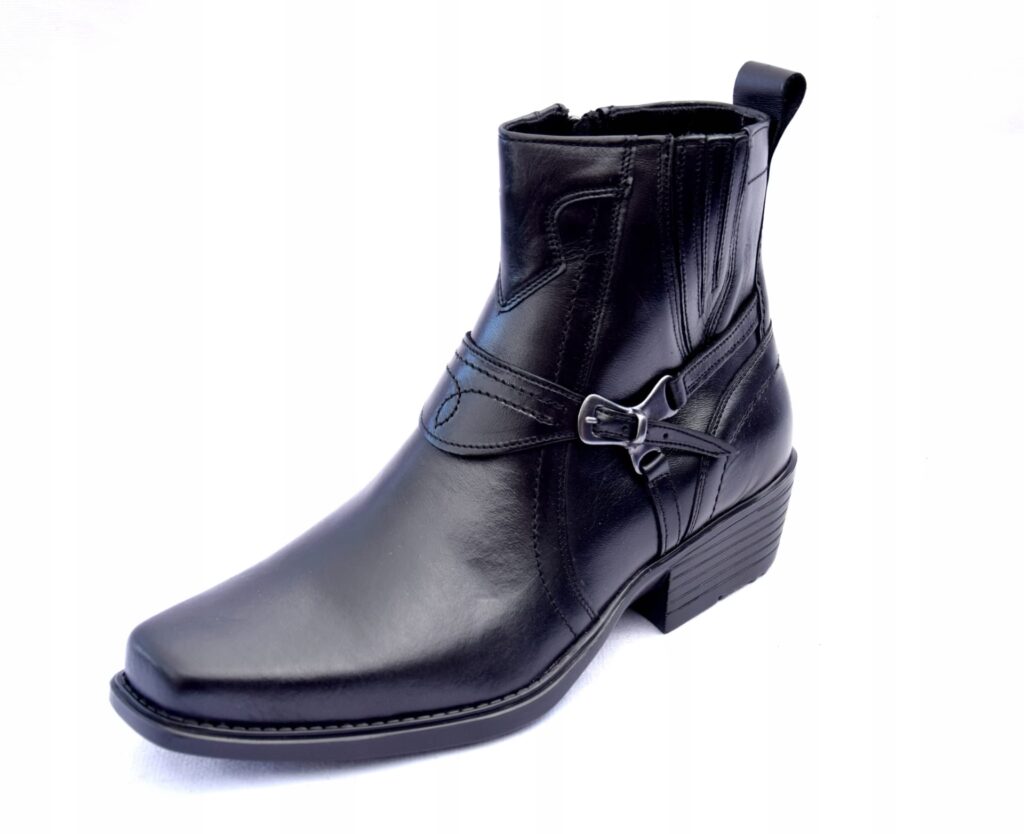 - Western Boots (Classic Cowboy): Charakteryzują się wysoką cholewką, skośnym obcasem (tzw. walking heel lub riding heel) i często spiczastym noskiem. To najbardziej rozpoznawalny typ.