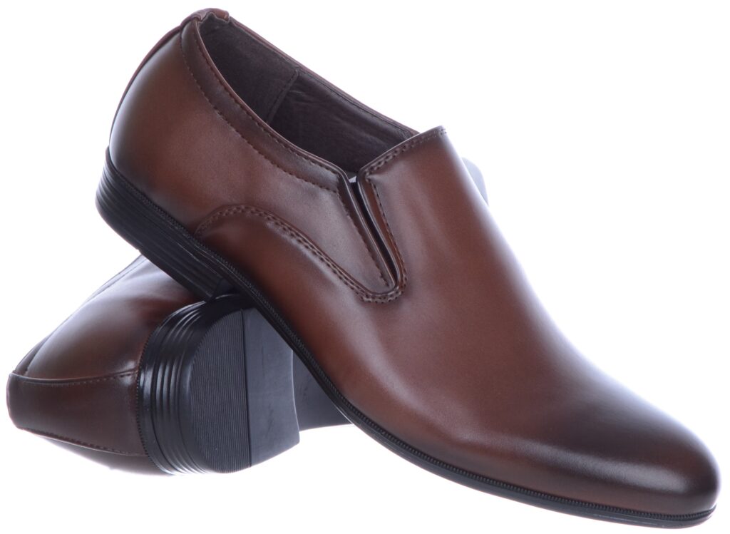 - Penny loafers: Klasyczny model z charakterystycznym paskiem z wycięciem na podbiciu. Wykonane ze skóry licowej, w stonowanym kolorze (brąz, burgund, granat, rzadziej czerń), na skórzanej podeszwie, mogą wyglądać całkiem elegancko w zestawieniu z mniej formalnym garniturem.