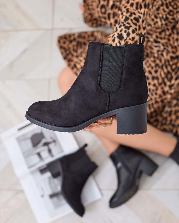 - Botki na słupku: Podobnie jak czółenka, botki na słupku oferują stabilność i komfort, a dodatkowo często lepiej trzymają kostkę.