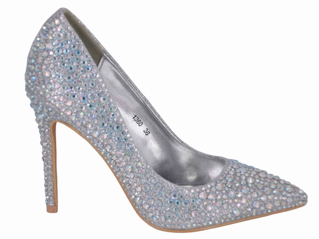 - Srebrne szpilki i czółenka: Symbol eleganckich wyjść. Mogą mieć gładkie metaliczne wykończenie, brokat, cekiny, zdobienia kryształkami. Idealne do sukienek i eleganckich spodni.