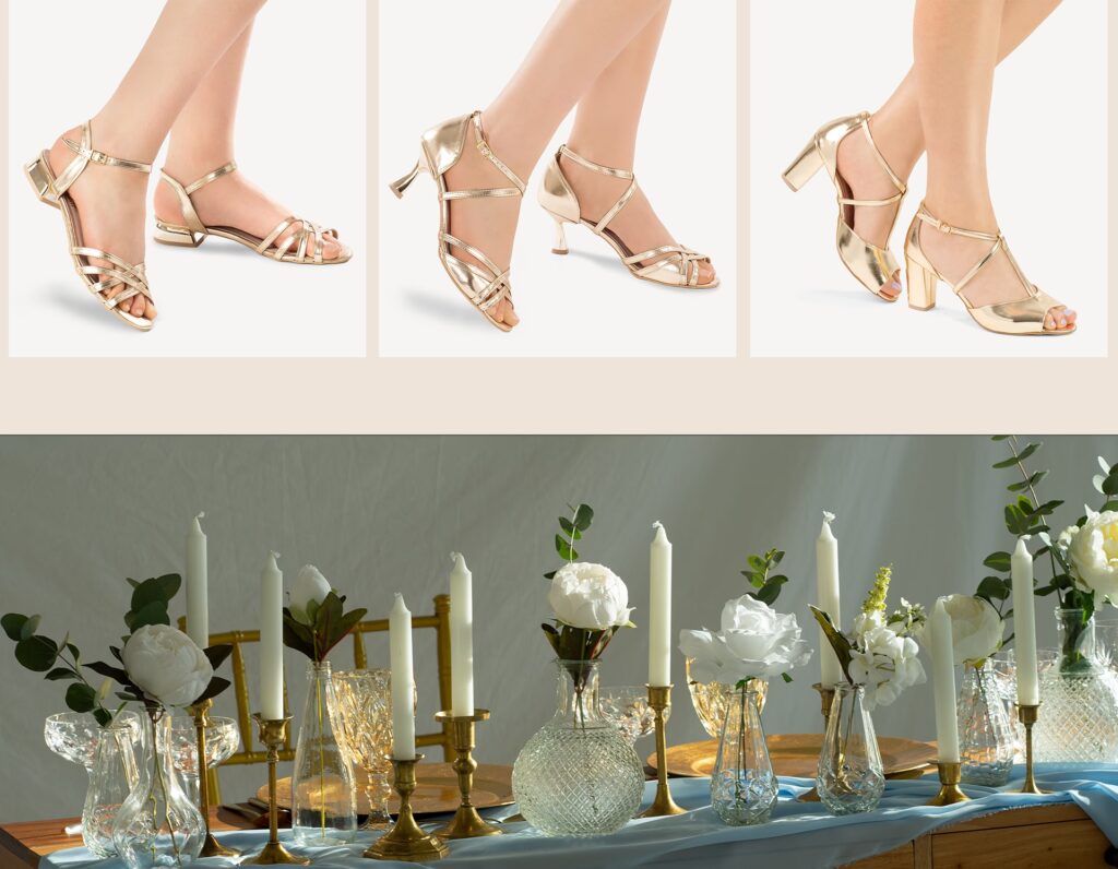 | Baleriny | Wysoki | Średnia do wysokiej | Bardzo wysoka | Buty na zmianę, cała uroczystość (na nieformalne wesela) |