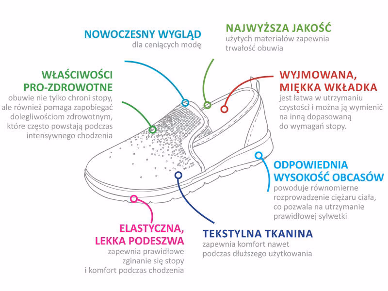 | Zapiętek | Sztywny, stabilizujący piętę | Miękki, elastyczny, brak zapiętka (np. klapki) |