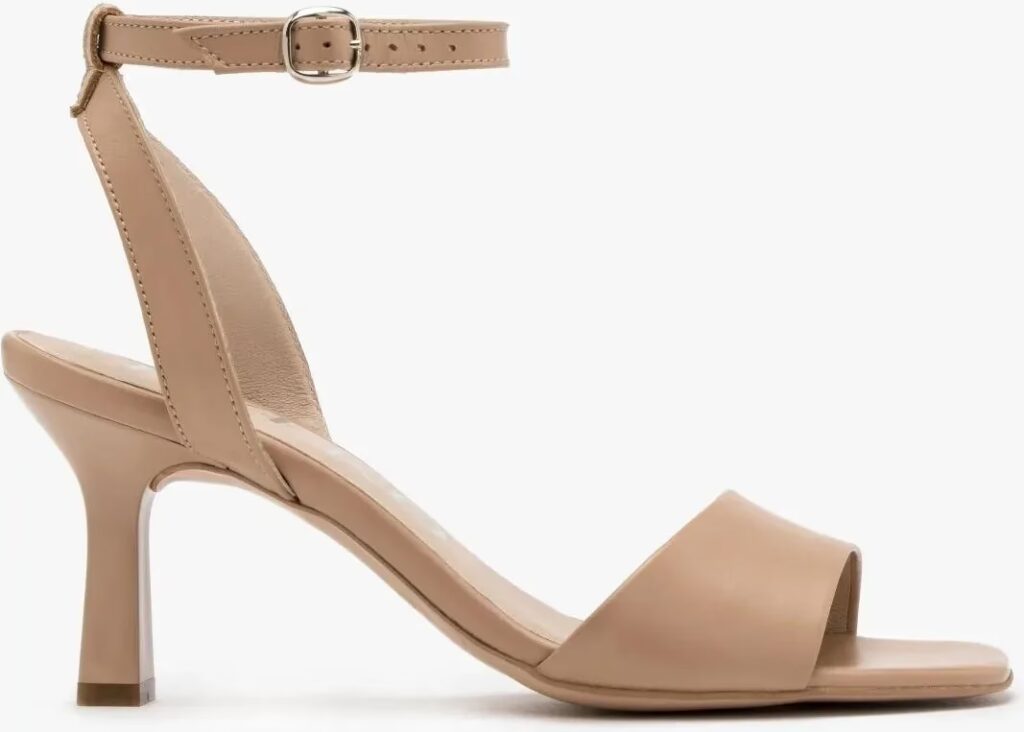- Beż: Uniwersalny kolor, który pasuje do wielu odcieni sukni, a dodatkowo optycznie wydłuża nogę.
