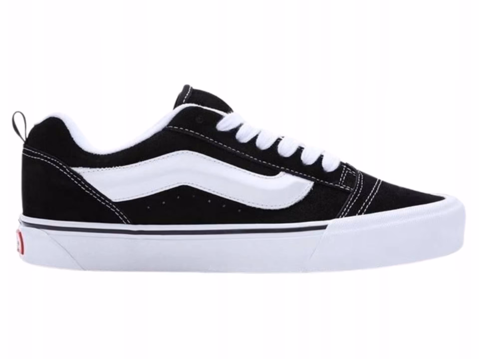Charakterystyczna wulkanizowana gumowa podeszwa z waflowym bieżnikiem (tzw. 'waffle sole') stała się znakiem rozpoznawczym Vans i kluczowym elementem zapewniającym przyczepność. Ta konstrukcja podeszwy jest elastyczna, co pozwala stopie na naturalny ruch i dobre czucie podłoża – cechy pożądane przez skaterów, ale także przekładające się na komfort chodzenia. Elastyczność podeszwy sprawia, że buty łatwo dopasowują się do kształtu stopy i ruchów ciała.