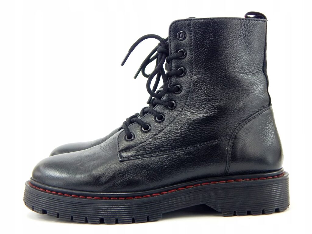 Czarne buty do beżowych spodni to połączenie, które budzi pewne kontrowersje. Choć nie jest to tak klasyczne i intuicyjne zestawienie jak z brązem czy granatem, może wyglądać bardzo dobrze, pod warunkiem, że jest świadomie użyte. Czarne buty nadają stylizacji bardziej zdecydowany, a nawet formalny charakter. Świetnie sprawdzają się, gdy reszta ubioru również zawiera czarne elementy (np. czarny pasek, czarna marynarka, czarny sweter). Czarne oksfordy czy derby do beżowych spodni garniturowych to opcja na mniej formalne okazje wymagające elegancji. Czarne loafersy czy nawet czarne skórzane sneakersy mogą pasować do beżowych chinosów w bardziej nowoczesnych, miejskich stylizacjach. Kluczem jest kontrast – czarne buty mocno odcinają się od jasnych spodni.