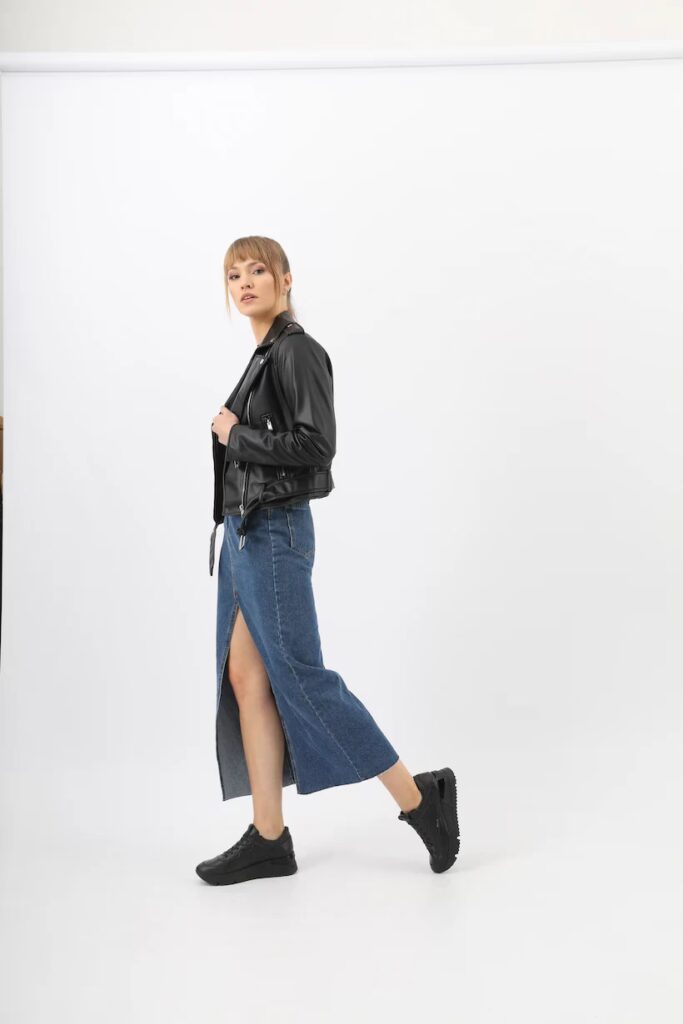 - Spódnicami: Podobnie jak w przypadku sukienek, czarne sneakersy świetnie wyglądają ze spódnicami. Pasują do spódnic jeansowych, plisowanych spódnic midi, spódnic ołówkowych (dla odważniejszych!) czy spódnic typu skater. Pozwalają stworzyć ciekawe kontrasty – na przykład połączenie eleganckiej, satynowej spódnicy z czarnymi sneakersami wygląda bardzo nowocześnie i stylowo.