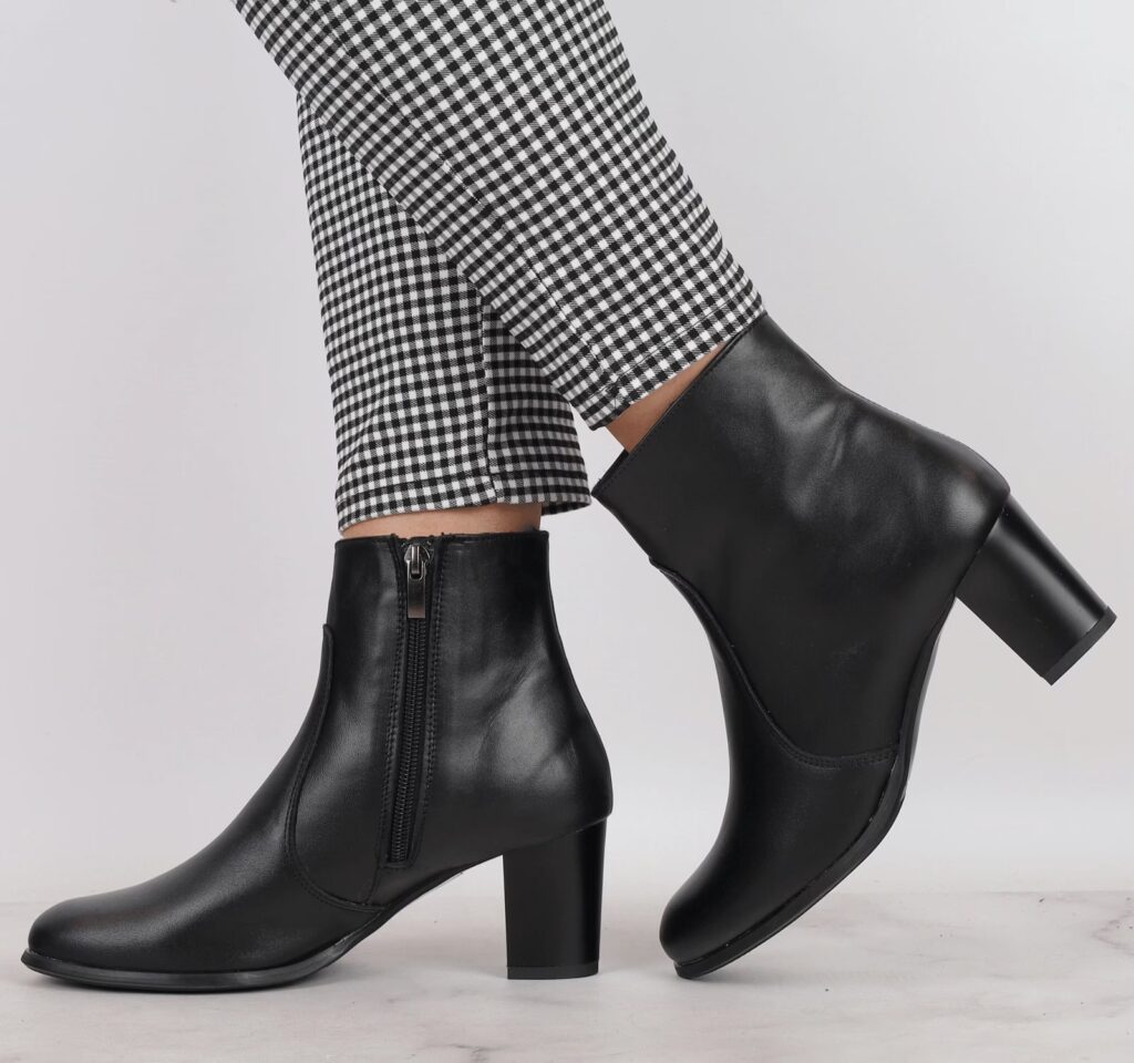 Jeśli jesteś niskiego wzrostu lub chcesz, aby Twoje nogi wydawały się dłuższe, wybieraj botki na obcasie lub koturnie. Im wyższy obcas, tym lepszy efekt. Szczególnie polecane są botki na słupku, które są stabilne i wygodne, a jednocześnie dodają wzrostu. Dobrym trikiem jest także wybór botków w kolorze zbliżonym do koloru spodni lub rajstop – taka monochromatyczna linia dodatkowo wydłuża nogę. Unikaj botków z paskiem wokół kostki, który może optycznie ją skracać.