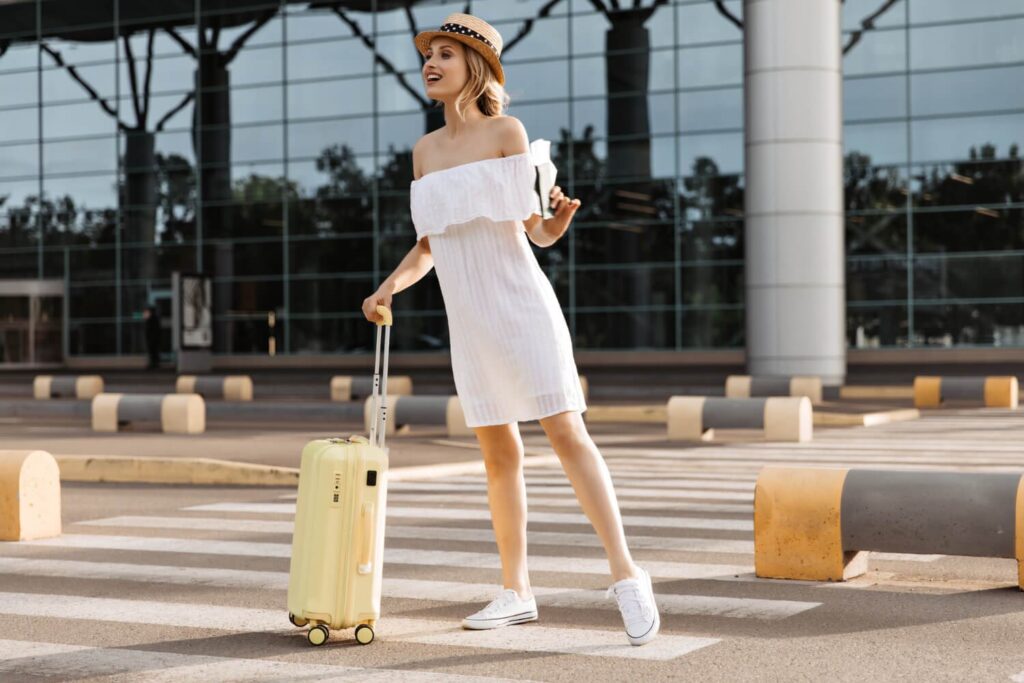 - Pamiętaj o celu podróży: Jeśli lecisz w miejsce, gdzie od razu po wyjściu z lotniska czeka Cię spacer lub musisz szybko się przemieścić, komfortowe buty na nogach będą jeszcze ważniejsze.